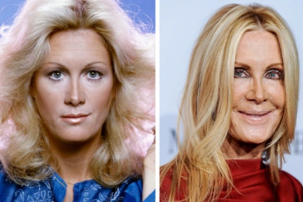 Joan Van Ark had an elegant, dignified face with soft, feminine lines in her youth. Post-surgery, overly high brow bones and raised eye corners made her look aggressive, breaking her natural harmony. Overfilled apple cheeks looked swollen, and tight skin lost elasticity—her smile became weird, making her older than peers and robbing her of elegance.