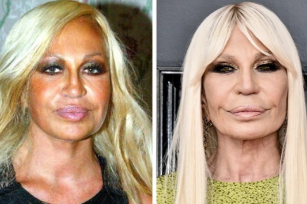 Donatella Versace had exquisite, coordinated features and a fashionable elegance in her youth. Post-surgery, overly plump lips dominated her face, looking clumsy. Obvious eye surgery left dry, lined skin, making her look much older. Chasing exaggeration cost her fashion beauty, leaving strong disharmony.
