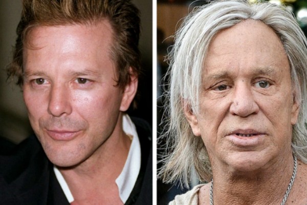 Mickey Rourke was a handsome tough guy with deep eyes and sharp contours in his youth. But multiple surgeries ruined his look: an overly prominent nose clashed with sagging tissues and filled areas, creating messy lines. His tough charm vanished, replaced by weirdness and aging—an shocking before-and-after contrast.